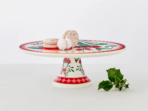 This Mistletoe footed cake stand will bring some Christmas cheer to your table. Featuring a contemporary floral design in red, green and white, it’s the perfect way to present festive cakes or a classic Christmas pudding. Made from quality porcelain, this stunning cake stand makes a beautiful centrepiece for your festive spread – or a wonderful gift under the tree.