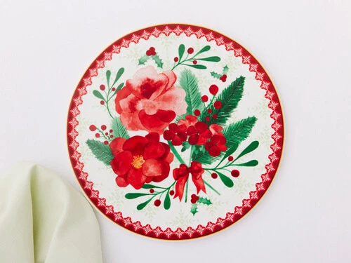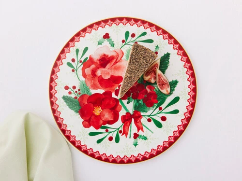 This Mistletoe pavlova or cheese plate will bring some Christmas cheer to your table. Featuring a contemporary floral design in red, green and white, it’s perfect for entertaining this Christmas. This versatile plate is perfect for presenting festive staples like pavlova and cheese plates, with a broad 30cm surface and a decorative rim. A beautiful statement piece, it also makes a wonderful gift under the tree.